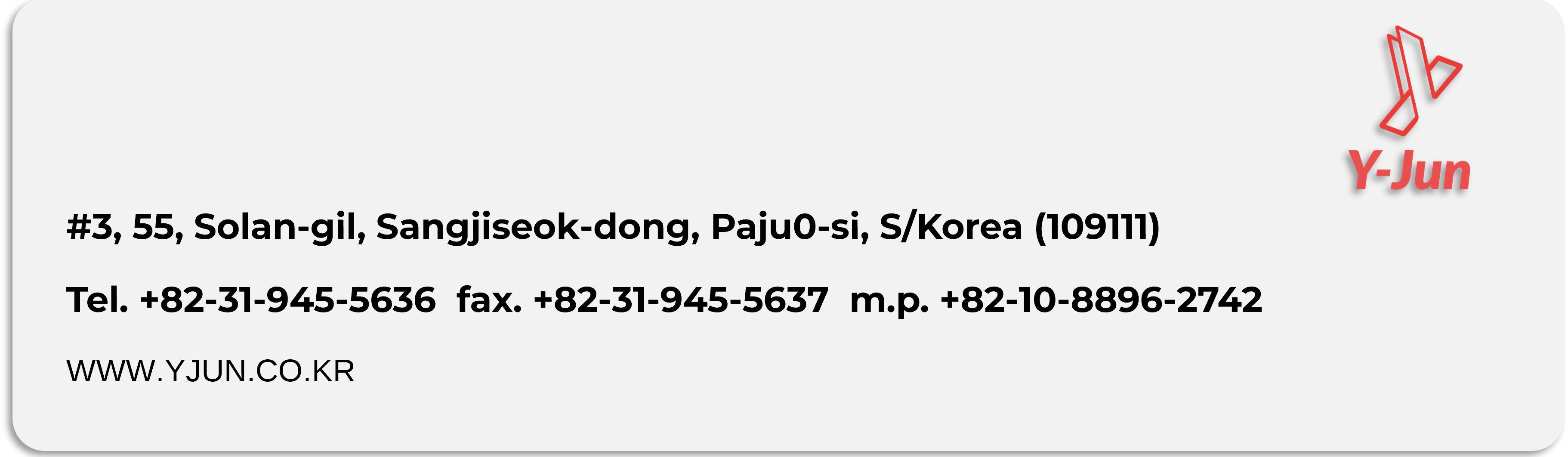 Y-Jun Co., Ltd established in Jan 2006. Company and staffs are young. When you contact our company, you can feel that everythng is fast and correct. We asre full of challenge. Our main products are ESD protection, Clean room and Safety products. When you